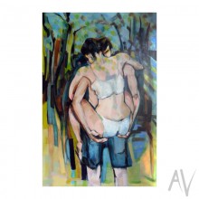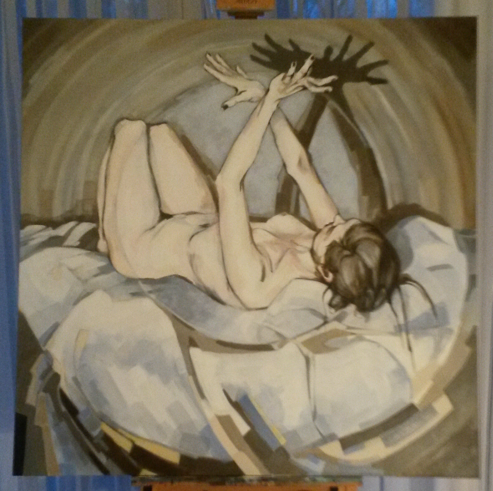 Zowel in de Linosnedes als in tekeningen en schilderijen zie je de keuzes die ik maak in lijn en vlakvoering. Oppervlaktes krijgen de aandacht, houding en compositie geven de emotie, door lichaamstaal verteld.